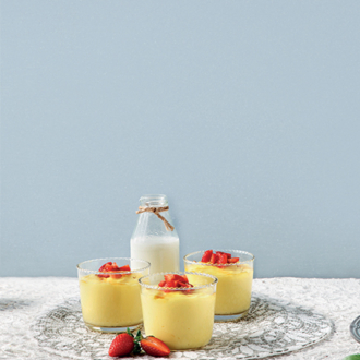 - ψιλοκομμένα κομματάκια φράουλας ή άλλων φρούτων για το σερβίρισμα