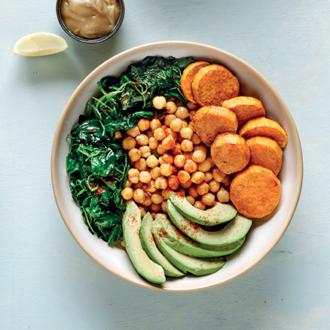 Buddha Bowl με ρεβίθια, γλυκοπατάτα και σπανάκι + σος ταχίνι