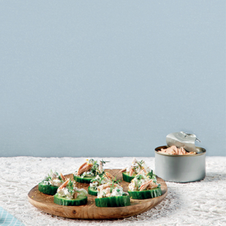 Με μισή κονσέρβα τόνο που περίσσεψε φτιάχνουμε μεζεδάκια με βάση από αγγούρι.