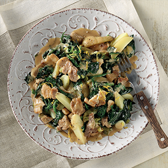 • Γκρεμολάτα: Παίρνουμε τη φλούδα του λεμονιού με το peeler και τη χτυπάμε στο πολυμίξερ μαζί με λίγο από τον χυμό λεμονιού. Πλένουμε και κόβουμε τον μαϊντανό σε κομμάτια. Τον προσθέτουμε στο μούλτι μαζί με το σκόρδο και το ελαιόλαδο. Αλατοπιπερώνουμε και χτυπάμε να πάρουμε έναν πολτό. Αν είναι πολύ πηχτός, αραιώνουμε με ελαιόλαδο.