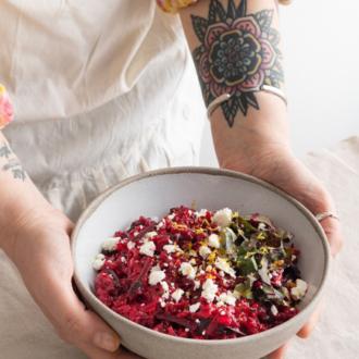 Παντζαρόρυζο με παντζαρόφυλλα και μυρωδικά