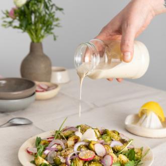 Σαλάτα με ψητά λαχανάκια Βρυξελλών και aioli ταχινιού
