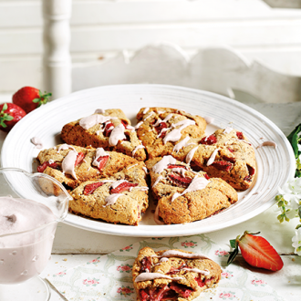 Scones με φράουλες και γλάσο «φραουλένιας» κρέμας από κάσιους