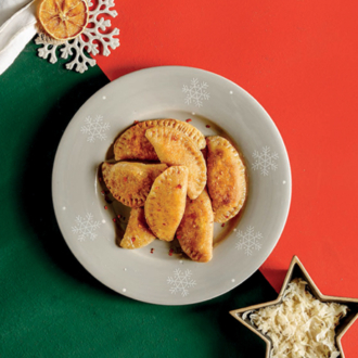 - Ζυμαρικά: Κόβουμε τη ζύμη στα δύο και ανοίγουμε 2 φύλλα, πάνω σε αλευρωμένο πάγκο. Με στρογγυλό κουπάτ κόβουμε τα φύλλα σε δίσκους. Γεμίζουμε τα μισά με το μείγμα πατάτας και τα υπόλοιπα με το μείγμα λάχανου. Κλείνουμε σε ημικυκλικό σχήμα, ενώνοντας τις άκρες, τις οποίες βρέχουμε ελαφρά και τις πιέζουμε με ένα πιρούνι για να κολλήσουν.