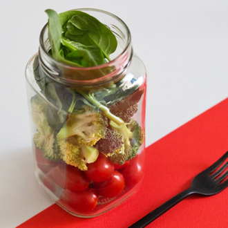 Τα γυάλινα βάζα είναι επίσης ένας έξυπνος και στυλάτος τρόπος να αποθηκεύσεις τις σαλάτες που θα φας στη δουλειά σου. Ρίχνε λίγες κουταλιές ντρέσινγκ στη βάση του βάζου, συνέχισε με στρώσεις χονδροκομμένων λαχανικών, κρουτόν, ξηρών καρπών κ.λ.π. και σφάλισε το καπάκι. Όταν έρθει η ώρα του μεσημεριανού, απλώς ανακίνησε καλά το βάζο ώστε το ντρέσινγκ να πάει παντού, βγάλε πιρούνι και καλή όρεξη!