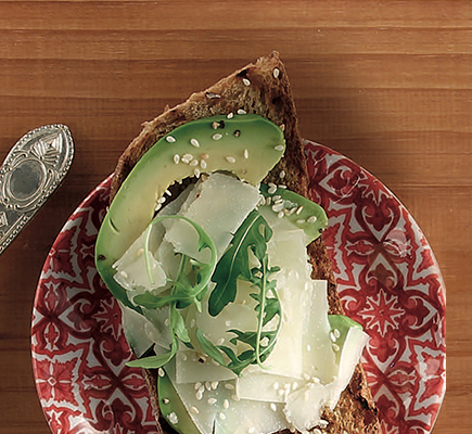 Ψιλοκόβουμε τα ασπράδια των αβγών και θρυμματίζουμε τους κρόκους. Σε ένα μπολ ανακατεύουμε τις ντομάτες με το σουσάμι, το κρεμμυδάκι, το κόλιανδρο, 40 ml από το ελαιόλαδο και αλατοπιπερώνουμε. Ψιλοκόβουμε το αβοκάντο και το ραντίζουμε με το χυμό λεμονιού. Ανακατεύουμε τα αβγά με τα ντοματίνια και το αβοκάντο προσεκτικά να μην διαλυθούν. Ανακατεύουμε την πάπρικα με το υπόλοιπο ελαιόλαδο. Ψήνουμε το ψωμί στο γκριλ ή στην τοστιέρα, μοιράζουμε την γέμιση και ραντίζουμε με το λάδι πάπρικας.