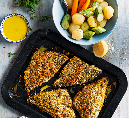 #allazoumesinithies και απολαμβάνουμε πεντανόστιμη τσιπούρα ΑΒ Επιλογή ψητή με κρούστα από αμύγδαλα και ψωμί και μια διαφορετική, ελαφριά coleslaw με φινόκιο.