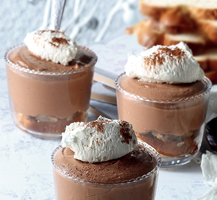 “ – Αρχίζουμε φτιάχνοντας τη μους. Κό-βουμε σε πολύ μικρά κομματάκια τη σοκολάτα και τη βάζουμε σε ένα μπολ. Βράζουμε 500 γρ. κρέμας γάλακτος μαζί με την κανέλα και τη ρίχνουμε στη σοκολάτα. – Περιμένουμε λίγα δευτερόλεπτα ώστε να αρχίσει να λιώνει η σοκολάτα και ανακατεύουμε απαλά με ένα σύρμα μέχρι να φτιάξουμε μια γυαλιστερή γκανάς. – Προσθέτουμε την υπόλοιπη κρέμα γάλακτος και τη μαρμελάδα κάστανο. Ομογενοποιούμε χτυπώντας με ραβδομπλέντερ. – Βάζουμε τη μους στο ψυγείο σκεπασμένη με μεμβράνη για μια νύχτα. Την επόμενη μέρα τη χτυπάμε στο μίξερ με το σύρμα μέχρι να σφίξει και να στέκεται. Προσέ-χουμε να