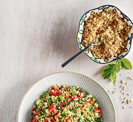 #allazoumesinithies και απολαμβάνουμε μία αρωματική και πλούσια σαλάτα ταμπουλέ με μαυρομάτικα φασόλια και ψητό λαβράκι ΑΒ Επιλογής.