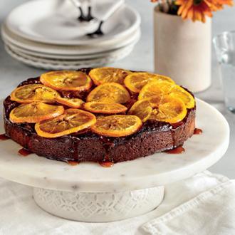 Αναποδογυρισμένο, σιμιγδαλένιο κέικ πορτοκαλιού με ανθόνερο και κάρδαμο