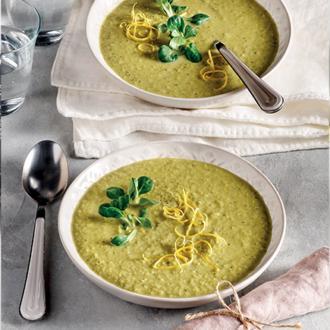 Ανοιξιάτικη κρεμώδης σούπα με σπαράγγια, αρακά, άνηθο και λεμόνι