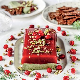 Χειροποίητο τυρί φιστικιού Αιγίνης με ζελέ κράνμπερις και κράκερ λιναρόσπορου