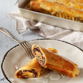 Λαδώνουμε ένα ταψί μακρόστενο και βάζουμε τα ρολά το ένα δίπλα στο άλλο. Βάζουμε το ταψί στο ψυγείο, να σφίξουν τα ρολά για να μπορέσουμε να τα κόψουμε. Κόβουμε τα ρολά κατά το μήκος τους και λίγο λοξά.