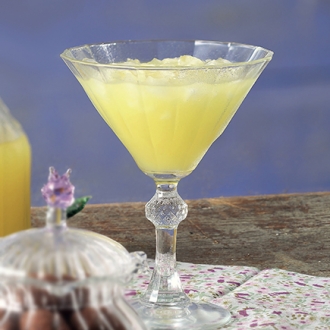 Σερβίρουμε με σπασμένο πάγο, σε ποτήρια μαρτίνι.