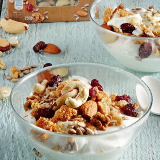 Γιαούρτι με ξηρούς καρπούς και μπισκότο βρόμης