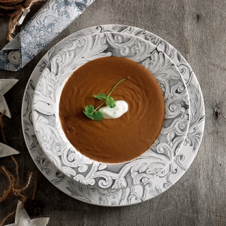 Ξαναρίχνουμε τη σούπα στην κατσαρόλα, αλατοπιπερώνουμε και πασπαλίζουμε με τα μπαχαρικά (κόλιανδρο, γλυκάνισο, κανέλα).