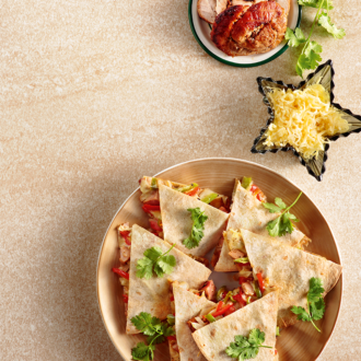 Κεσαντίγιας με κυβάκια από περίσσευμα καρέ χοιρινού, τυριά και λαχανικά
