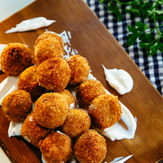 Τέλος, σερβίρουμε τις κροκέτες κουνουπιδιού πασπαλίζοντας τες με sauce γιαουρτιού.