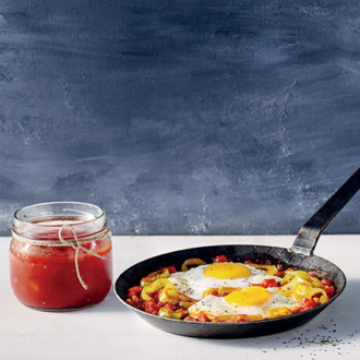 Με τη μισή κονσέρβα από ντοματάκια κονκασέ που ξέμεινε στο ψυγείο, φτιάχνουμε ντομάτες με αβγά
