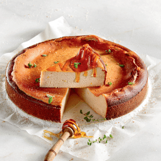 τα πλαϊνά, την ξεφορμάρουμε και τη σερβίρουμε σε πιατέλα, γαρνίροντας με μέλι, κανέλα και φυλλαράκια από