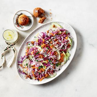 Μουστοκούλουρα αλμυρά σε μπουκιές πάνω από μια λαχανοσαλάτα