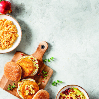 Μπέργκερ κόκκινης φακής με πολίτικη λαχανοσαλάτα