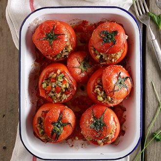 Ντομάτες γεμιστές με κιμά λαχανικών στον φούρνο