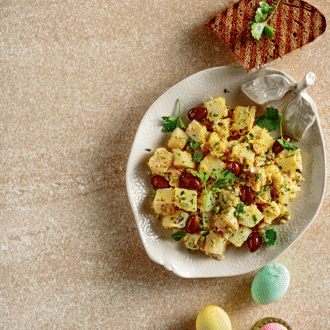 Πατατοσαλάτα με ψευτομαγιονέζα από τα βραστά πασχαλινά αβγά