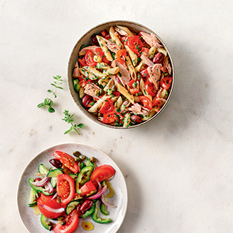 Πικάντικο ντιπ με το υπόλοιπο ψητό κουνουπίδι και ψητά τριγωνάκια από αραβικές πίτες