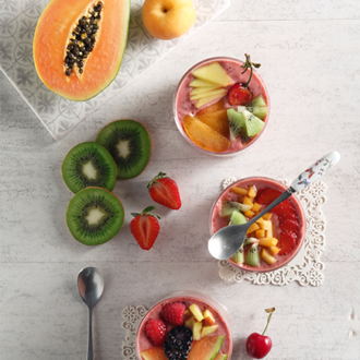 - πορτοκαλί & κίτρινα φρούτα - μάνγκο, βερίκοκα, παπάγια, ροδάκινα, μπανάνα, ανανά (για το σερβίρισμα)