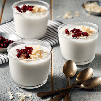 Τα σερβίρουμε πασπαλισμένα με καρύδα και κράνμπερις.