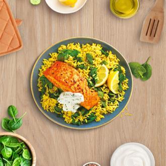 Για τους λάτρεις του Tikka, μαριναρισμένα κομμάτια σολομού με μπαχαρικά και φυσικά με Ben's Original™ Ρύζι Basmati.