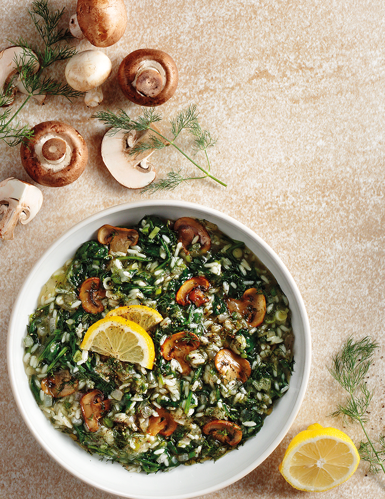 Σπανακόρυζο με μανιτάρια από τη σαλάτα