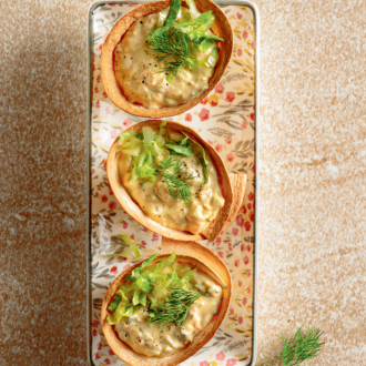 Ταρτάκια τορτίγιας με μαρούλι και αβγοσαλάτα