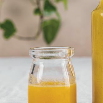 - Σε ένα μπλέντερ βάζουμε το φυτικό γιαούρτι, την μπανάνα κομμένη σε μεσαία κομμάτια, το φυτικό ρόφημα, το μάνγκο κομμένο σε μεσαία κομμάτια, τον κουρκουμά και το σιρόπι maple ή αγαύης.
