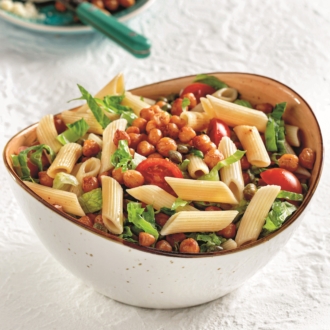 Vegan Caesar μακαρονοσαλάτα με ψητά, πικάντικα ρεβίθια