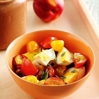 Βραστά αβγά με γρήγορη σαλάτα από ντοματίνια
