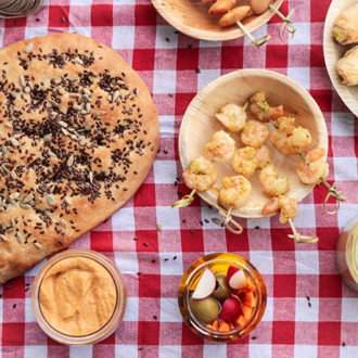 Μια ακόμη εύκολη και ωραία ιδέα είναι τα «σουβλάκια», πέρασε σε ξυλάκια ό,τι φαντάζεσαι, ψητά θαλασσινά (γαρίδες, καλαμαράκια) , λαχανικά, ακόμη και γίγαντες.