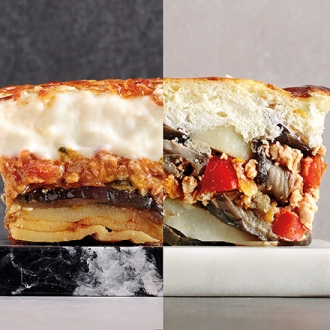 Στην αναπάντεχα νόστιμη και απείρως πιο ελαφριά εκδοχή του, ο κλασικός μουσακάς φτιάχνεται με κιμά κοτόπουλου, μπεσαμέλ από ελαφρύ γιαούρτι και τις μελιτζάνες και τις πατάτες ψητές αντί τηγανητές, για να μη βαρύνουν με λάδι αλλά να κρατήσουν τη νοστιμιά τους.