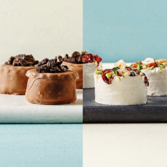 - Πασπαλίζουμε με τα φρούτα, τους ξηρούς καρπούς και όλα τα υπόλοιπα. Βάζουμε το μείγμα στην κατάψυξη να παγώσει, για περίπου 12 ώρες.