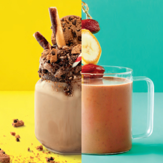 - Χτυπάμε καλά όλα τα υλικά σε ένα μπλέντερ μέχρι να ομογενοποιηθούν καλά, μοιράζουμε σε 4 ποτήρια και σερβίρουμε.