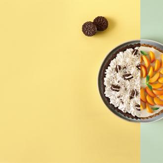 - Βάση: Χτυπάμε όλα τα υλικά στο μπλέντερ μέχρι να προκύψει μια εύθρυπτη ζύμη. Τοποθετούμε το μείγμα σε μια ταρτιέρα ή φόρμα διαμέτρου 20 εκ. και πιέζουμε ελαφρά, φροντίζοντας να καλύψουμε και τα πλαϊνά τοιχώματα. Ψήνουμε για 20 λεπτά και αφήνουμε να κρυώσει εντελώς.