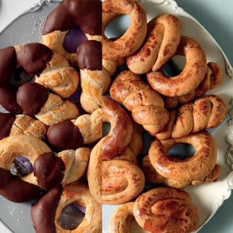 - Προθερμαίνουμε τον φούρνο στους 175°C, στις αντιστάσεις. Στρώνουμε με αντικολλητικό χαρτί ψησίματος ένα μεγάλο ρηχό ταψί. Πλάθουμε με το μείγμα κουλουράκια σε πλεξούδες και τα αραδιάζουμε στο ταψί, σε απόσταση 2-3 εκ. μεταξύ τους. Τα αλείφουμε με τον κρόκο και τα ψήνουμε για 20-22 λεπτά το πολύ, στη μεσαία θέση σχάρας, μέχρι να φουσκώσουν ελαφρώς και να ροδίσουν. Τα κουλουράκια θα είναι μαλακά, λόγω του μελιού.