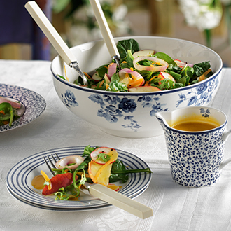 Σαλάτα: Σε ένα μεγάλο μπολ ανακατεύουμε καλά με τα χέρια, το σπανάκι, τη ρόκα, το κρεμμύδι, το καρότο, τα ραπανάκια και το ροδάκινο. Βινεγκρέτ: Βάζουμε όλα τα υλικά σε ένα γυάλινο βαζάκι με βιδωτό καπάκι και το ανακινούμε έντονα, μέχρι να ενοποιηθούν και να γίνει μια πηχτή σάλτσα. Βάζουμε τη σαλάτα με μια φαρδιά και βαθιά πιατέλα, περιχύνουμε με τη βινεγκρέτ, ανακατεύουμε και σερβίρουμε.
