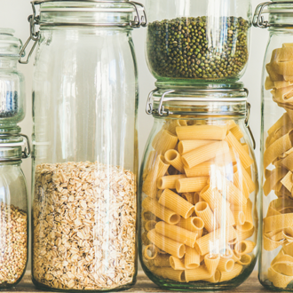 Τα όσπρια, οι ξηροί καρποί το ρύζι, τα μακαρόνια και τα διάφορα δημητριακά διατηρούνται για πολύ καιρό στα ντουλάπια μας. Τα αποθηκευουμε σε σκεύη που κλείνουν αεροστεγώς και τα διατηρούμε σε σκοτεινό, ξηρό και κρύο περιβάλλον.