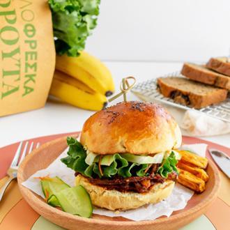 Ας δούμε, τι θα φάμε σήμερα, λοιπόν; Vegan burger με σπιτικό ψωμί και γλυκοπατάτες και για επιδόρπιο έχουμε αφράτο banana bread, για όλους όσους νοιαζόμαστε και αγαπάμε να φροντίζουμε.