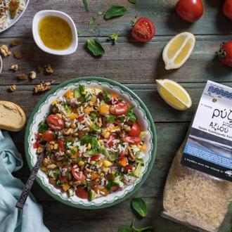 Μαζί με την ΑΒ Βασιλόπουλος #allazoumesinithies και σήμερα φτιάχνουμε ένα διαφορετικό ταμπουλέ με ρύζι μπόνετ Αξιού, λαχανικά, καρύδια και σταφίδες. Μια ελαφριά αλλά συνάμα πλούσια και θρεπτική σαλάτα στην οποία η γλυκιά γεύση από τις σταφίδες έρχεται να εξισορροπήσει την οξύτητα του λεμονιού και τα καρύδια προσθέτουν τα απαραίτητα εκείνα αντιοξειδωτικά και λιπαρά οξέα που χρειάζεται ο οργανισμός σου.