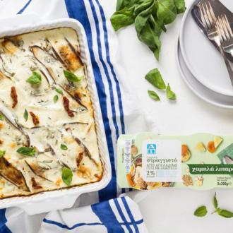 Κάπως έτσι βγήκε κι η συνταγή που σου προτείνω σήμερα. Βασίζεται στο μουσακά, αλλά είναι ένα διαφορετικό πιάτο, πολύ γρήγορο, θρεπτικό και νόστιμο. Πρόκειται για στρώσεις από πατάτες και τσακώνικες μελιτζάνες μαζί με βασιλικό και λιαστές τομάτες, τα οποία μαγειρεύονται σε μία σάλτσα φτιαγμένη με στραγγιστό γιαούρτι 2% της ΑΒ Βασιλόπουλος, τυρί τσαλαφούτι, κεφίρ, αβγά και λίγο μοσχοκάρυδο.
