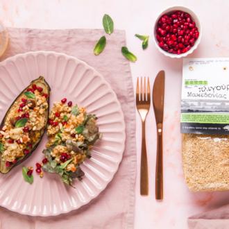 Η συνταγή που επιλέξαμε να σας προτείνουμε είναι ψητές μελιτζάνες γεμιστές με πλιγούρι, τομάτες, χουρμάδες, ρόδι και κουκουνάρι. Ένα πιάτο εύκολο και γρήγορο με υλικά γεμάτα θρεπτικά συστατικά. Ας δούμε την συνταγή: