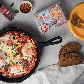 Ακόμα κι αν δεν έχεις TikTok, κάπου θα έχει πάρει το μάτι σου τη διάσημη πλέον μακαρονάδα με σάλτσα από ψητή φέτα και τοματίνια που έχει ξετρελάνει τον πλανήτη κι εμένα μαζί. Με αυτή τη σάλτσα έχω κάνει άπειρα πειράματα με υπέροχα αποτελέσματα. Ένα από αυτά, όμως, το έχω μέσα στην καρδιά μου και είναι, με τι άλλο, με αβγά! Αν με ακολουθείς στο Instagram, θα πεις αναμενόμενο. Αν όχι, ας συστηθούμε! Είμαι η Surtuko και, ναι, λατρεύω τα αβγά. Για μένα τα αβγά είναι ένας εύκολος τρόπος να προσθέσω περισσότερη πρωτεΐνη στη διατροφή μου, η οποία αποτελείται κυρίως από λαχανικά. Όμως, σύμφωνα με τους ειδικούς του Ινστιτούτου Prolepsis με το οποίο συνεργάζεται η ΑΒ Βασιλόπουλος, τα αβγά χαρίζουν στον οργανισμό μας και πολλά άλλα, όπως βιταμίνες Α, D, B12, θειαμίνη, ριβοφλαβίνη και άλλα θρεπτικά όπως η χολίνη.